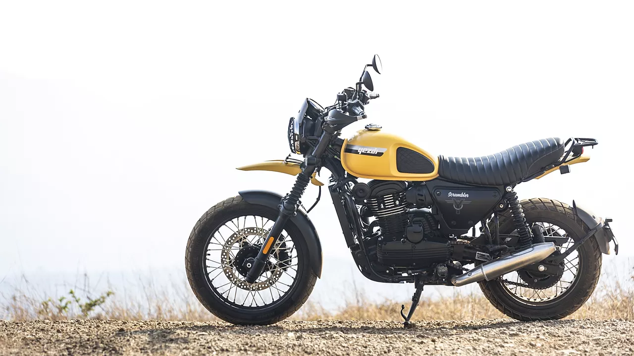 In terms of styling, the new Yezdi Scrambler features a neo-retro design with a rugged persona that is aimed for soft off-roading. The styling cues comprise a tall front fender, wire-spoke wheels, upswept exhaust canisters, a curvy fuel tank, a chrome fuel lid, an off-set instrument cluster, a ribbed pattern for the seat cover, and a tyre hugger-mounted rear numberplate. The feature list includes full-LED lighting and a digital instrument cluster, however, it misses Bluetooth connectivity. Other standard features on the Scrambler include handlebar-mounted USB and Type-C charging points and a three-level ABS.